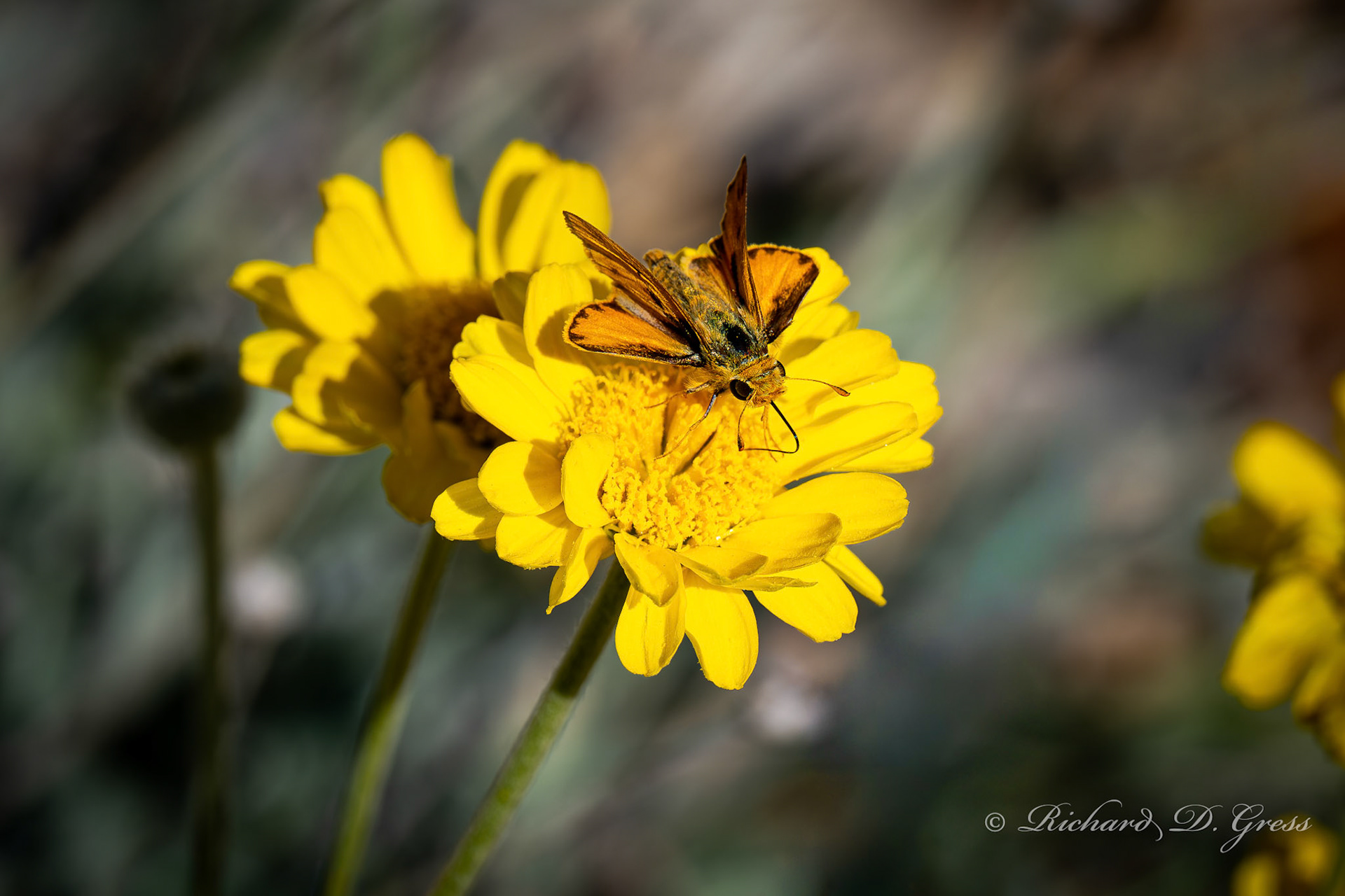 Not much blooming in my yard this month but these little butterflies were taking what they could find...A North American species of skipper butterflies...Reaching approximately 1 inch in length.