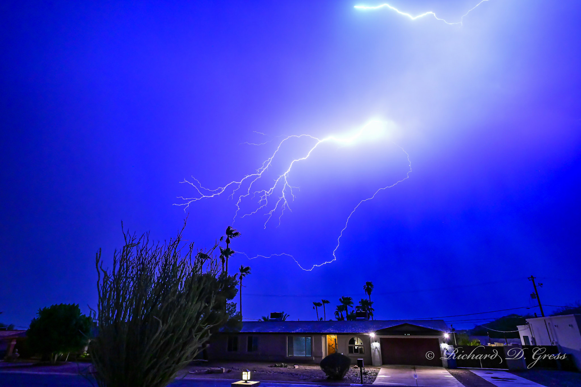 A quick passing summer storm...lots of lightning...I have not chased lightning for a long time...I took these photos from my garage...the rain was not heavy but any rain on the end of the lens is not good...the area to the north west was very active..
