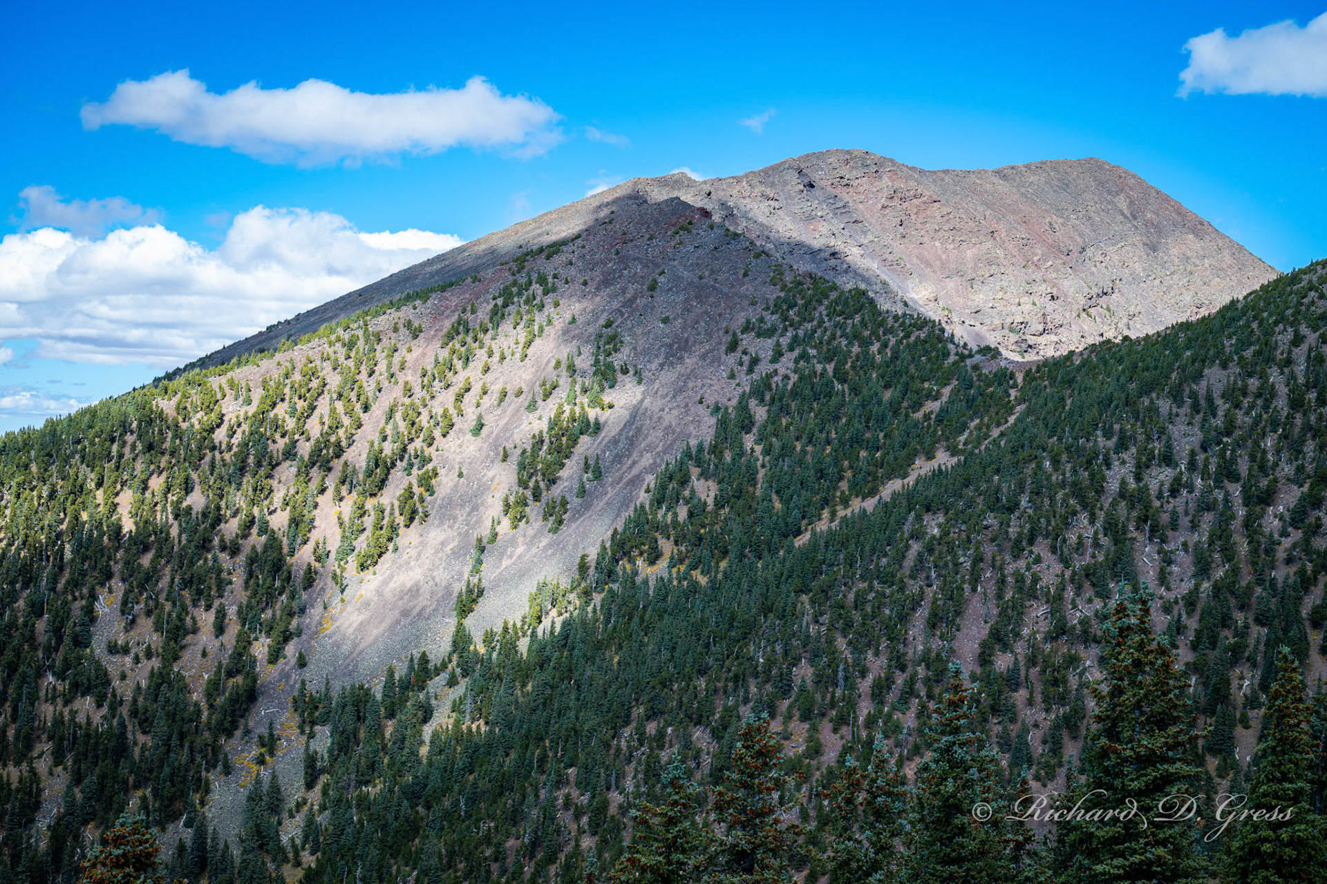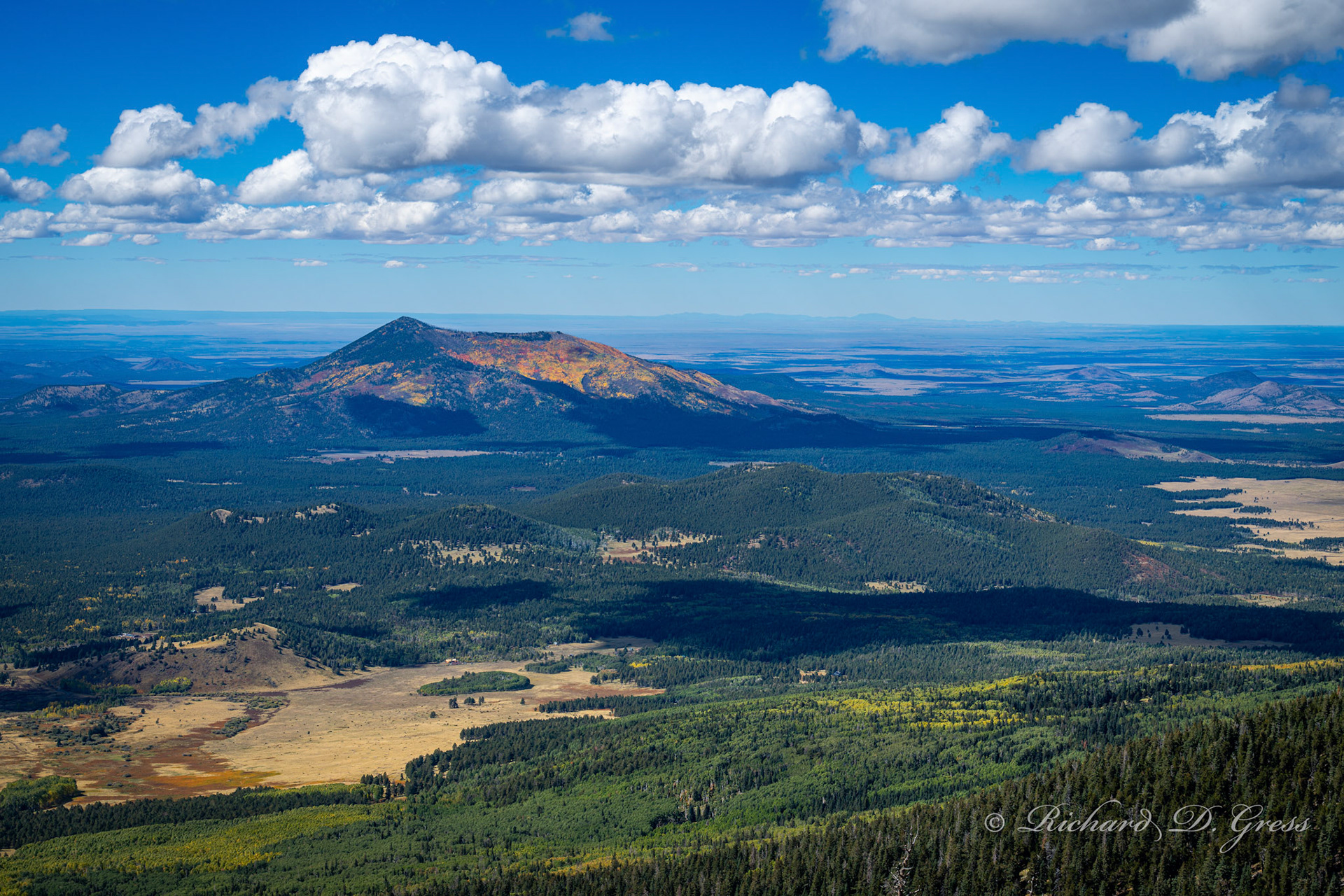 Early October, leaves just starting to show some color, temperature at the top of the mountain about 54 degrees.