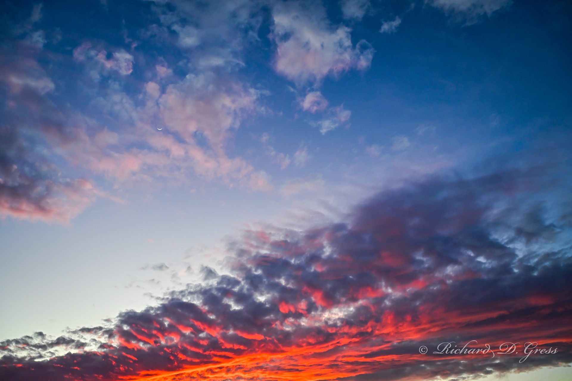 I never get tired of a nice sunset...if you look very closely just to the left of the copyright mark in the first photo, you can see a faint little white dot, planet Venus.